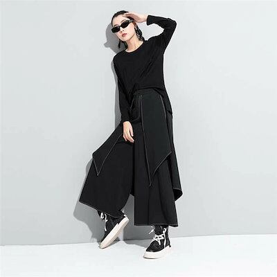 ワイドパンツ レイヤードパンツ パンツ レディース ワイドパンツ ボトムス ドレープ ストレッチ カフェパンツ ロングパンツ 切り替えデザイン アシメ アシンメトリー 変形デザイン デザインパンツ 無