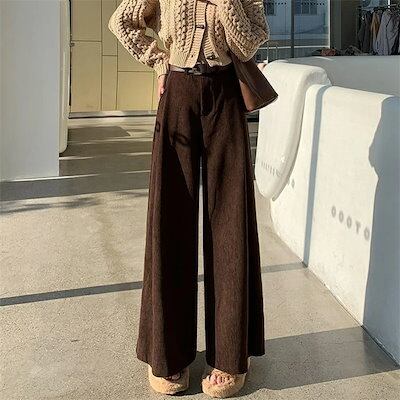ワイドパンツ パンツコーデュロイ レディース 裏起毛 ストレートパンツ コーデュロイパンツ 裏起毛パンツ コーデュロイ ストレート 秋冬 ウエストゴム ボトムス ズボン 大きいサイズ ゆったり 体型カ