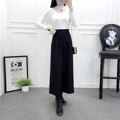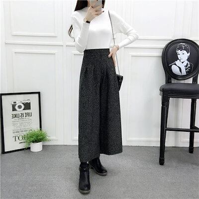 ワイドパンツ 秋冬 冬 レディース 綿混 ウエストゴム ハイウエスト ロング OL 通勤 オフィス 無地 チェック柄 デーリー