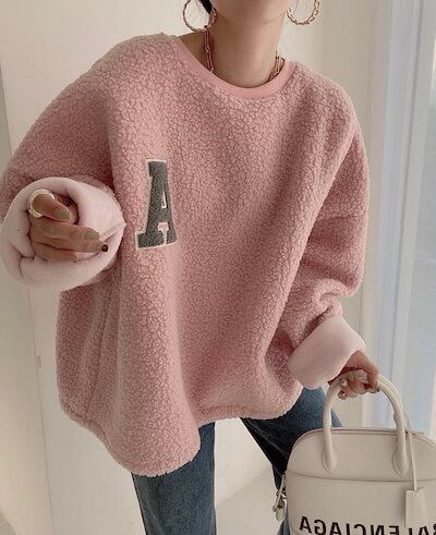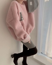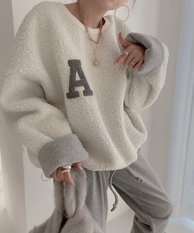 トレーナ ボア プルオーバー トップス 重ね着風 大きいサイズ レディース ジャージ トレーナー 長袖 無地 春 秋 冬ドロップショルダー ゆったり 柔らかい お洒落 可愛い