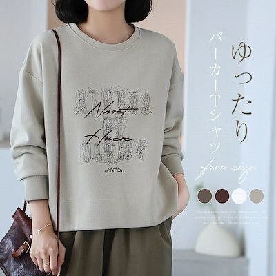 トレーナー レディース 春 秋 長袖 トレーナー クルーネック Tシャツ プルオーバー トップス パーカーTシャツ カットソー スウェット 大きいサイズ ドロップショルダー ビッグシルエット ベーシッ