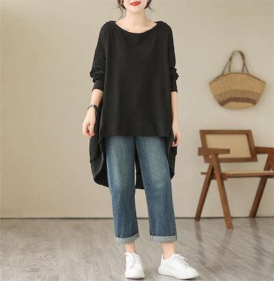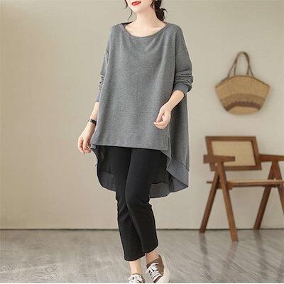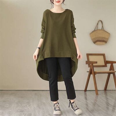 バックフレア トレーナー レディース ビッグシルエット トップス 秋冬 チュニック トレーナー パーカー チュニック 長袖 前後差 レディース 春 秋 秋冬 スリット 可愛い 無地 ラウンドネック