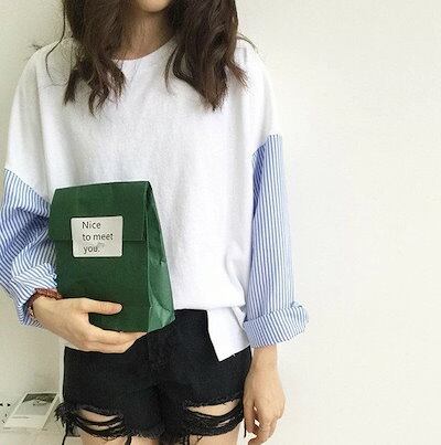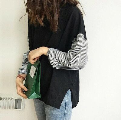 トレーナー Tシャツ プルオーバー 切り替え ハイカラー トップス ボーダー柄 切り返し 重ね着風 シャツ風 体系カバー レディース ゆったり レイヤード シンプル ゆる カジュアル 普段着 可愛