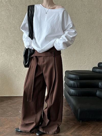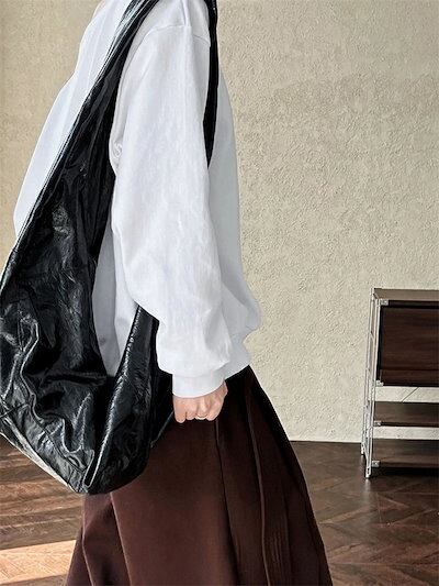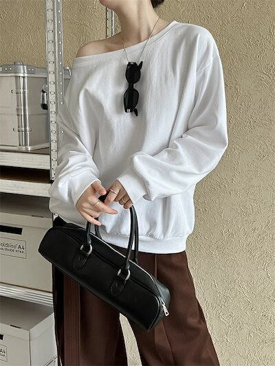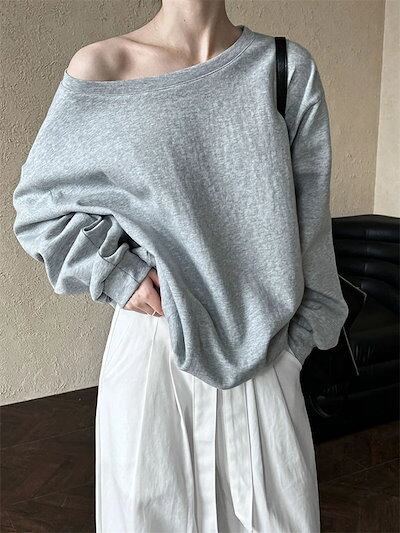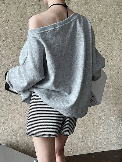 トップス パーカー レディース 肩出し ブルオーバー 2way 春 秋冬 長袖 無地 レイヤード 重ね着 クルーネック 綿混 コットン トレーナー インナー ゆったり シンプル カジュアル オシャレ