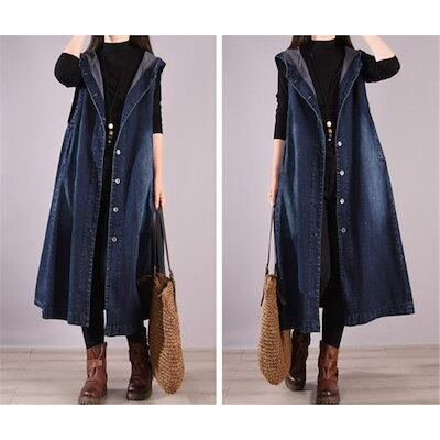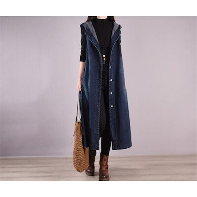 ベスト レディース ジレ デニム ロングベスト 前開 ジレベスト トレンチコート ノースリーブ 秋服 春服 カジュアル 20代 30代 40代 50代 フード付き