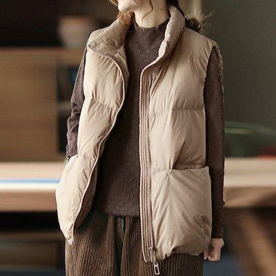 フェイクダウンベスト レディース 40代 ノースリーブ ダウンジャケット 中綿ブルゾン ダブルファスナー ゆったり アウター 秋冬 ライトダウン インナーダウン