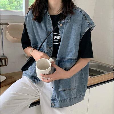 デニムベスト レディース ジレ ノースリーブ ベスト 前開き 春 夏 秋 前ボタン ポケット アウター デニム 羽織り おしゃれ 着やせ 体型カバー