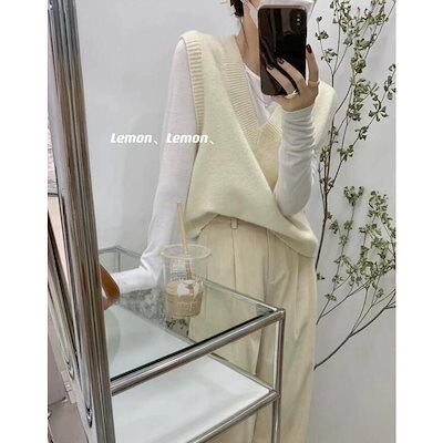 ニット ベスト レディース セーター ノースリーブ トップス レイヤード ミディアム丈 Vネック ドロップドショルダー シンプル カジュアル オフィス