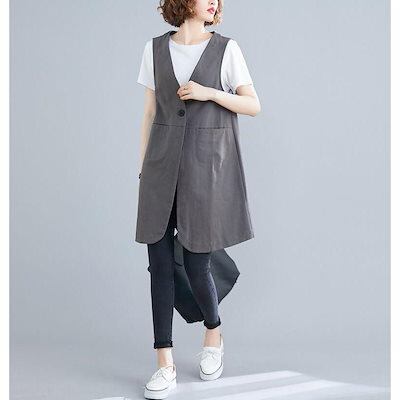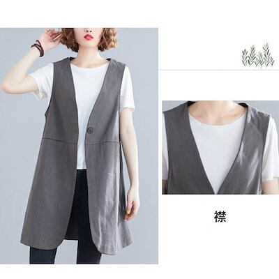 ジレベスト レディース 春夏 ロングジレ リネン テーラードジレ 綿麻 トレンチベスト テーラード風 無地 ジレンチ 大きいサイズ ロングベスト 秋