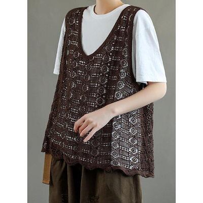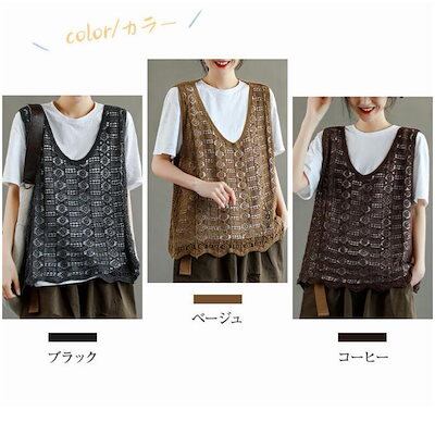 透かし編みベスト レディース 春 夏 ベスト プルオーバー かぎ編み レースベスト カジュアル レイヤード ニットベスト きれいめ カジュアル