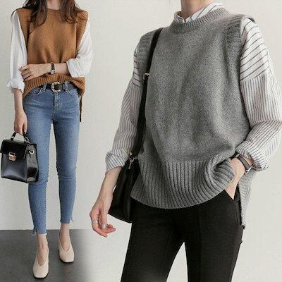 ニットベスト レディース 40代 秋服 ベストセーター 無地 ショット丈 上品 ノースリープニットベスト セーター韓国風 体型カバー 通勤 着痩せ 2色