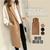 ロングベスト ジレ ベスト ロングコート 前開き レディース テーラード 袖なし ジャケット コーデ トレンチ 春秋 オフィス 通勤 フォーマル 事務服 大きいサイズ