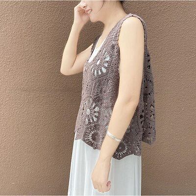 ベスト レースベスト レディース 春 夏 40代 花柄レース タンクトップ トップス vネック 透かし編み 薄手 重ね着 ベストノースリーブ タンク 春コーデ