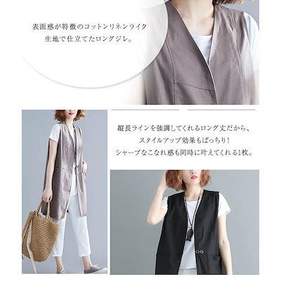 ベスト レディース 春 リネンライクロングジレ ジレ ロングコートノースリーブ ロングジレ トレンチベスト 無地 綿麻 ロングベスト夏 大きいサイズ