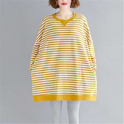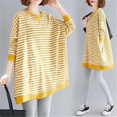 パーカー レディース 長袖 トレーナー ロングトレーナー ボーダー トップス 大きサイズ ラウンドネック秋服 秋物 トレーナー ロングパーカー プルオーバー チュニック ボーダー柄トレーナー カジュア
