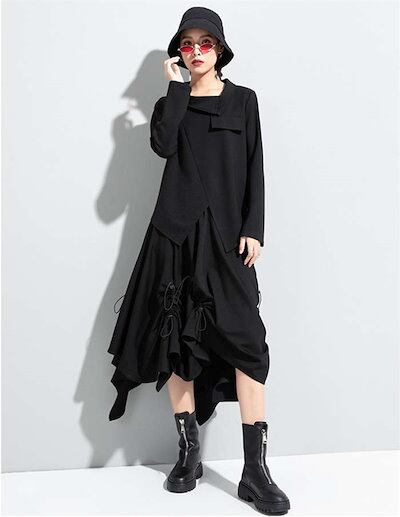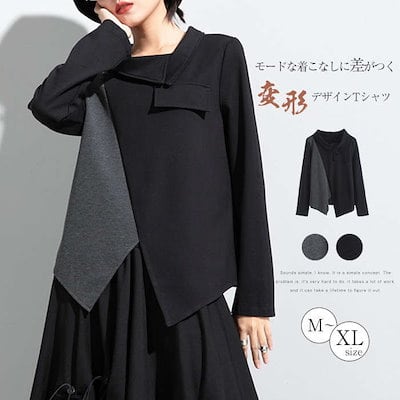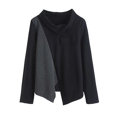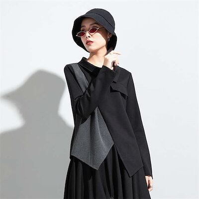 パーカー Tシャツ レディース 長袖 カットソー トップス 無地 モード系 変形 アシンメトリー アシメ 変形Tシャツ パーカー ヘムデザイン 個性的 クラシカル きれいめ おしゃれ オフィス 春 秋