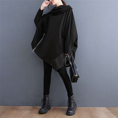 アシンメトリー パーカー レディース 秋冬 パーカーワンピース チュニック 大きめ ロングパーカー トレーナー ビッグパーカー スウェット アシンメトリーパーカ ゆったり ドルマンスリーブ 無地 韓国
