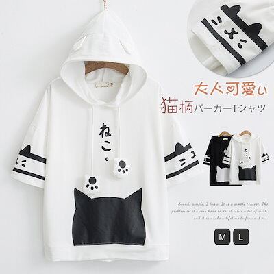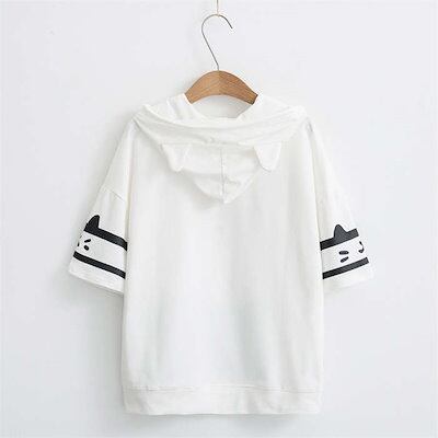 パーカー Tシャツ レディース スウェットフードパーカー トップス 半袖パーカー 綿 コットン フーディ プルオーバー 無地 トレーナー カジュアルスウェット プルオーバー 可愛いパーカーフード付き