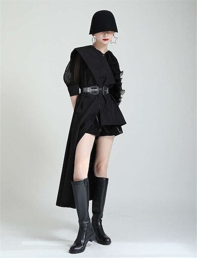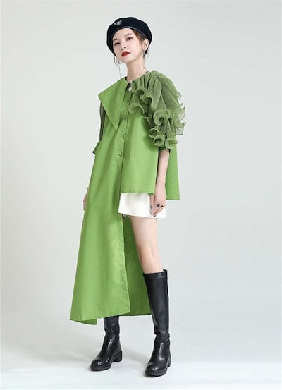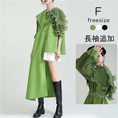 ブラウス レディース きれいめ アシンメトリー トップス フリル ケープカラー ビッグカラー 二の腕カバー 変形デザイン モード系 個性的 きれいめ おしゃれ 無地 体型カバー ビッグカラー 五分袖