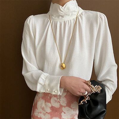 ハイネックブラウス レディース 春 秋 長袖 ハイネック シャツ トップス 白ブラウス おしゃれ きれいめ 大人可愛い カジュアル 体型カバー 立ち襟 通気性 お呼ばれ 通勤 卒業式 卒園式 入園式