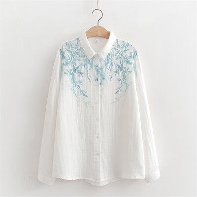 ガーゼ シャツ ガーゼシャツ レディース 秋 シャツブラウス ガーゼ チュニック 花柄シャツ ガーゼ シャツ 日焼け防止 襟 UVカット トップス 長袖 ブラウス 折襟 無地 コットン100% 綿 4