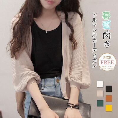 カーディガン レディース Vネック ショート丈 薄手ニット 長袖 無地 アウター 羽織り バルーンスリーブ ドルマンニット ゆったり レディース 春夏 カーデ 冷房対策 前開き アウター 大きいサイズ
