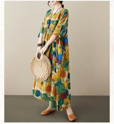 マキシワンピース 大きいサイズ 夏 レディース ドット 水玉柄 半袖 ゆったり ロングワンピ 総柄 ロング丈 キレイめ フレア 大人可愛い ゆったり 体型カバー ナチュラル 着痩せ リゾートワンピース