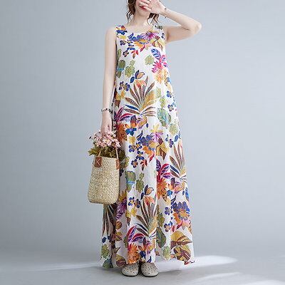 ワンピース 夏 ノースリーブ ワンピース マキシワンピース 花柄ワンピース リゾートワンピース マキシ丈キレイめ 夏 ロング ワンピ 森ガール 春 大きいサイズ ゆったり 体型カバー カジュアル ナチ