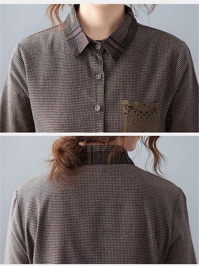 チェックシャツワンピース 長袖 レディース 秋 冬 ロングシャツワンピース ギンガムチェック 大きいサイズ ロングワンピ ゆったり 体型カバー ミモレ丈 綿混 ポケット カジュアル 大人 着痩せ 春