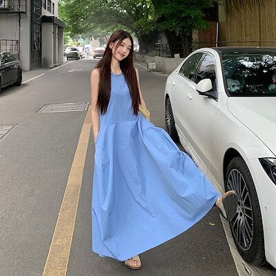 ワンピース ノースリーブ 夏 レディース ロングワンピース 無地 フレアワンピース Aライン ロングワンピ ミモレ丈 ワンピ 袖なし シンプル ゆったり カジュアル ベーシック エレガント お