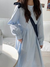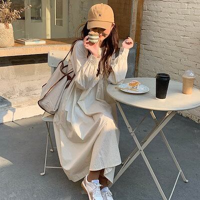 ワンピース レディース ゆったり ロング チュニック 長袖 ワンピ チュニックワンピース カジュアル 重ね着 無地 シンプル 春 秋 冬 ベージュ ブルー