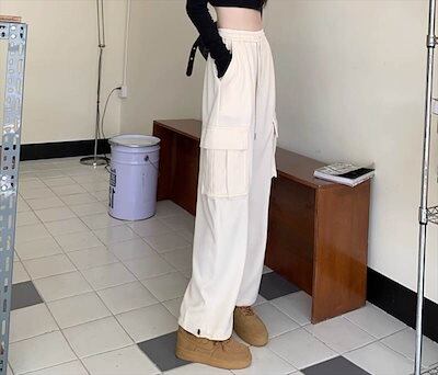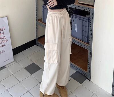 レディース ボトムス ポケット ハイウエスト ウエストゴム 厚手 かわいい 大人可愛い きれいめ シンプル カジュアル お洒落 大人女子 こなれ感 ラフ メンズライク マニッシュ ボーイッシ