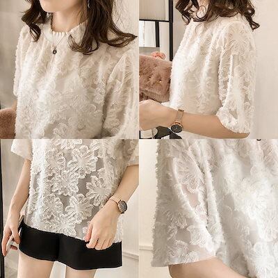 ブラウス レディース レースシフォンブラウス レース スーツ オフィス 夏 白 涼しい きれいめ 大きいサイズ カジュアル リボン 春 フリル ブランド ノーアイロン 薄手 安い シフォン 事務服 半