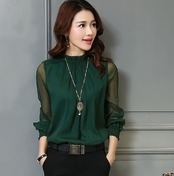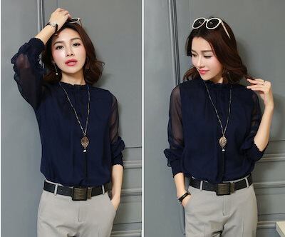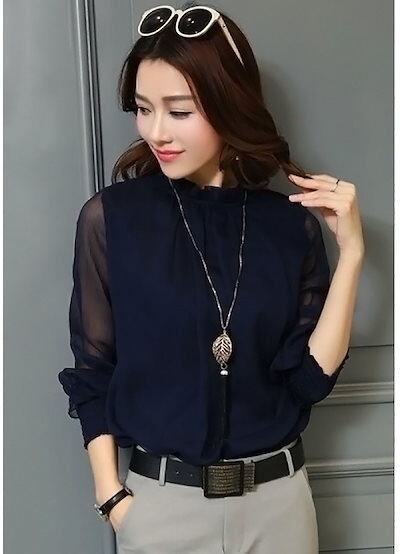 .シフォン トップス ブラウス 長袖 シャツ オフィス レディース オフィスブラウス シフォンブラウス オフィスカジュアル ビジネス カットソー 春 夏 秋 冬 アクセサリー付き シースルー 袖 レー