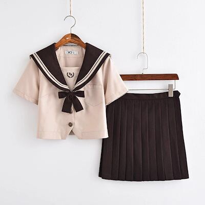学生服 半袖+ブラウン スカート 上下セット セーラー服 リボン 女子 制服 JK制服 女子高生