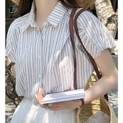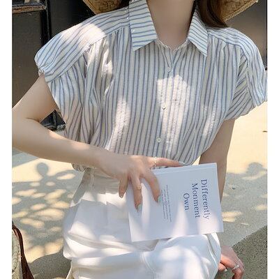 レディース 女性用 ウィメンズ トップス シャツ ブラウス ストライプ 通勤 シンプル オシャレ 半袖 無地 シフォンシャツ 通気性