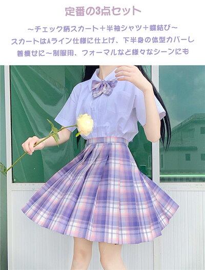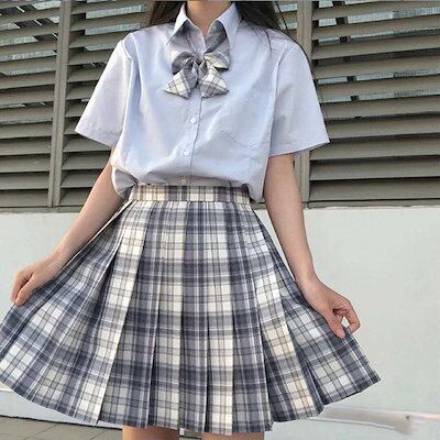 女子高生 制服セット 3点セット タイ風 半袖シャツ/スカート/リボン 可愛い おしゃれ 人気 カジュアル JK制服 定番 日常用 半袖 トップス ミニプリーツスカート 学生服 高校生 コスプレ レデ