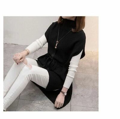 ニットベスト ロング レディース ロングベスト ニット ベスト ハイネック 春 秋 冬 カジュアル 大人 可愛い ノースリーブ ベルト付き きれいめ シンプル 無地 おしゃれ かわいい ベーシック 大