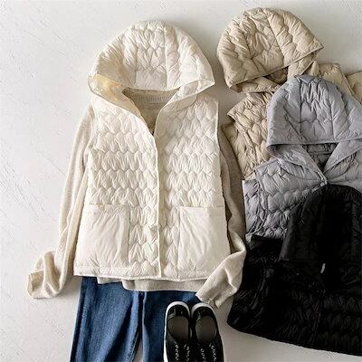 ベスト フード付き キルティングベスト レディース 中綿ベスト 秋 冬 ダウンベスト トップス 前開きベスト ノースリーブ 羽織 ライトアウター シンプル 軽い レイヤード 重ね着 防寒 大きいサイズ