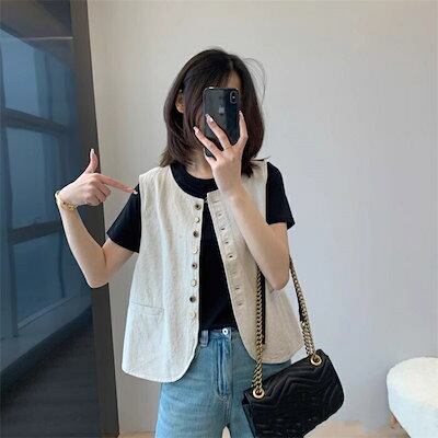 ジレ レディース ベスト 前開き ジレ 春夏秋 綿麻風 綿麻風ベスト トップス ノースリーブ 無地 カジュアルベスト クルーネック トップス ジレベスト 羽織り 袖なし 大きいサイズ ゆったり 前開