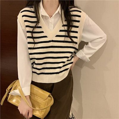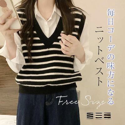 ニットベスト ボーダー レディース 秋冬 vネック ベスト トップス ニット ベスト キレイめ レイヤード 重ね着 通勤 オフィス OL ノースリーブ カジュアル お洒落 大人 きれいめ ストレッチ