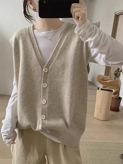ニット ベスト 前開き レディース 秋冬 Vネック 前ボタン 重ね着 ニット カーディガン ノースリーブ ショート丈 ボレロ ニットベストフリーサイズ トップス ゆったり キレイめ 通勤 OL大人可