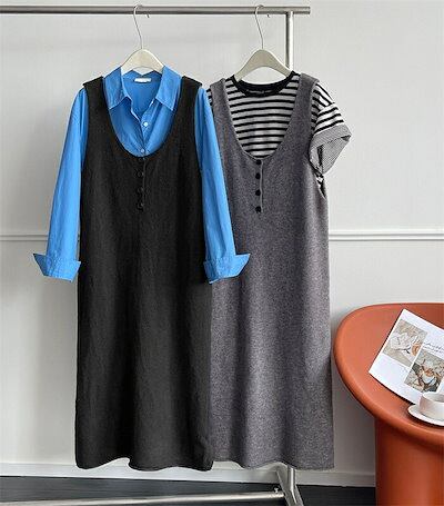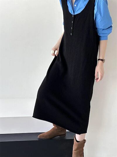 ニットベスト ロング レディース 秋 冬 ロングニットワンピース レディース ノースリーブワンピース ロングニットベスト レイヤード 重ね着 Uネック ワンピース 春秋冬 ミモレ丈 カジュアル 大人