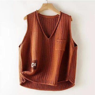 ニットベスト ベスト レディース Vネック 無地 ノースリーブ タンクトップ トップス 袖なし 重ね着 レイヤード ショート丈 セーター ゆったり 体型カバー ラウンドネック 袖なし シンプル 大人