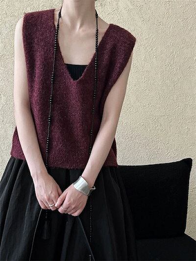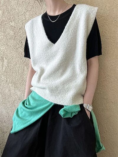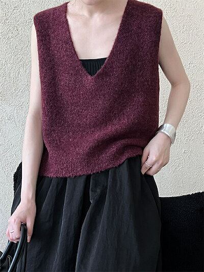 ニットベスト レディース 秋 冬 ニット トップス vネックベスト ショート丈 ノースリーブ 無地 シンプル レイヤード 重ね着 セーター 大きいサイズ ゆったり 体型カバー カジュアル 大人可愛い