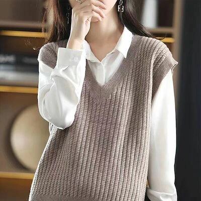 ベスト レディース vネック ニットベスト 無地 ノースリーブ タンクトップ ケーブル編み ニット トップス ショート丈 セーター 袖なし 重ね着 レイヤード ゆったり シンプル 大人 カジュアル お