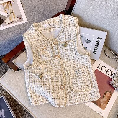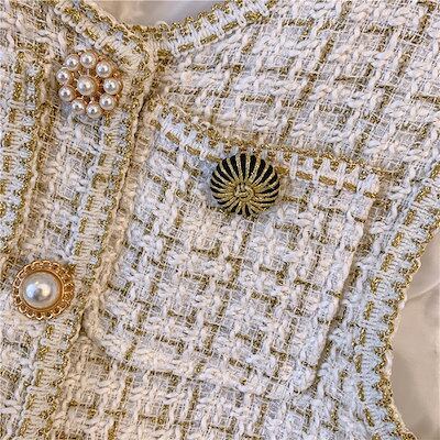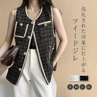 ベスト レディース ジレ ベスト パールボタンツイードペプラムベスト ジャケット レディース ポケット ジレ ベスト ロング 羽織 アウター 春 ラメ 光沢 上品 高見え ママ 結婚式 通勤 重