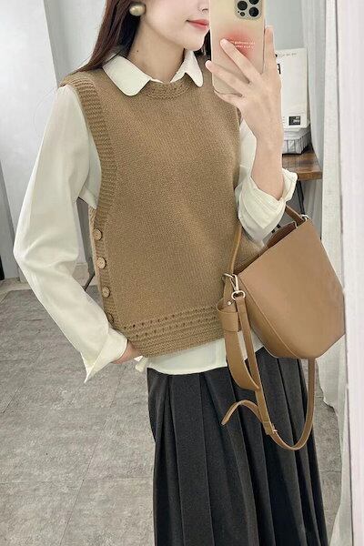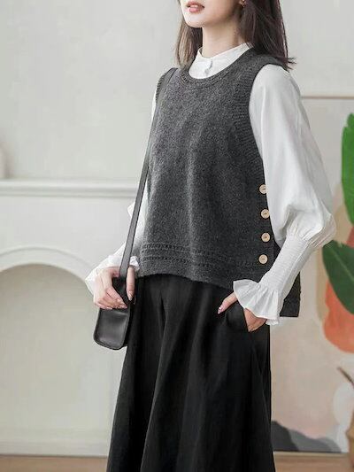 ニットベスト レディース ベスト クルーネック トップス 春 秋 冬 ベスト プルオーバー ノースリーブ 大きいサイズ 秋ベスト レイヤード 重ね着 ゆったり オフィス OL 通勤 カジュアル 大人