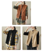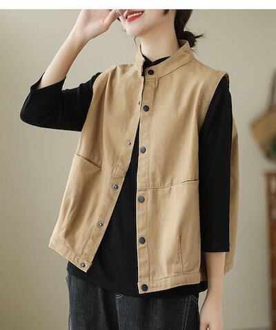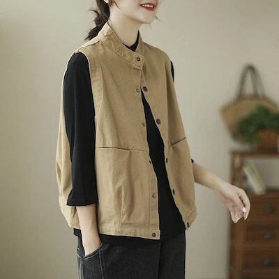 レディース ジレ ノースリーブ Vネック トップス ジャケット 前開き カジュアル シンプル ナチュラル ブラック ショート丈 ゆったり 大きめ 重ね着 綿 コットン 無地 大人 かわいい きれいめ