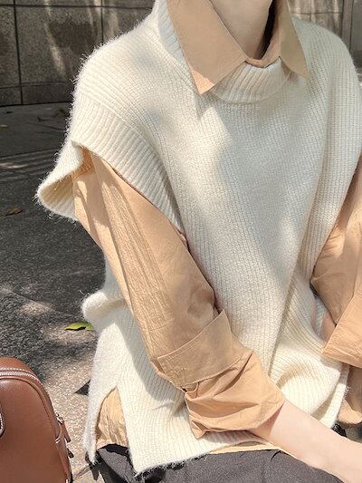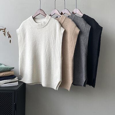 ニットベスト レディース 秋 ニット ベスト ショート丈 トップス カーディガン ノースリーブ 重ね着 レイヤード風 プルオーバー 定番 ブ カジュアル 大人 かわいい シンプル おし